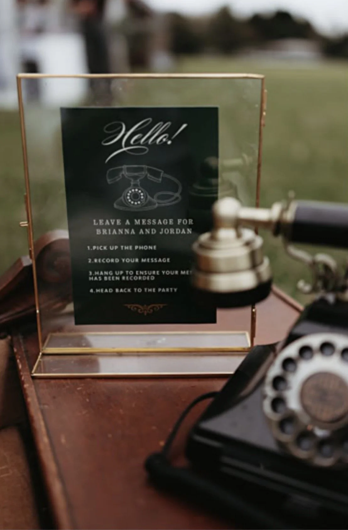 Add a touch of elegance with a champagne tower, capture every laugh and speech with our vintage telephone booth guestbook (audio + video), and make your mark with a personalised mirror.